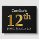 Black, Faux Gold 12th Birthday Party + Custom Name Guest Book