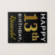 Black, Faux Gold 13th Birthday + Custom Name Jigsaw Puzzle
