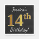 Black, Faux Gold 14th Birthday + Custom Name Napkin