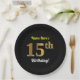 Black, Faux Gold 15th Birthday + Custom Name Paper Plate