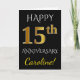 Black, Faux Gold 15th Wedding Anniversary + Name Card