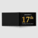 This guest book design features the ordinal number "17th" with a faux gold-like appearance. It also features a custom name, and a black coloured background. It could be used at a party for somebody celebrating their seventeenth birthday. [~Z0000054]