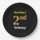 Black, Faux Gold 2nd Birthday + Custom Name Paper Plate