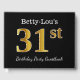 Black, Faux Gold 31st Birthday Party + Custom Name Guest Book
