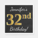 Black, Faux Gold 32nd Birthday + Custom Name Napkin