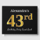 Black, Faux Gold 43rd Birthday Party + Custom Name Guest Book