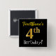 Black, Faux Gold 4th Birthday, With Custom Name 15 Cm Square Badge