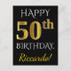 Black, Faux Gold 50th Birthday + Custom Name Postcard