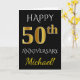 Black, Faux Gold 50th Wedding Anniversary + Name Card