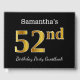 Black, Faux Gold 52nd Birthday Party + Custom Name Guest Book