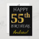 Black, Faux Gold 55th Birthday + Custom Name Postcard