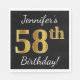 Black, Faux Gold 58th Birthday + Custom Name Napkin