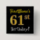 Black, Faux Gold 61st Birthday, With Custom Name 15 Cm Square Badge