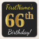 Black, Faux Gold 66th Birthday + Custom Name Square Paper Coaster