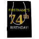 Black, Faux Gold 74th Birthday + Custom Name Medium Gift Bag