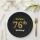 Black, Faux Gold 76th Birthday + Custom Name Paper Plate