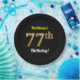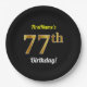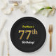 Black, Faux Gold 77th Birthday + Custom Name Paper Plate