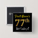Black, Faux Gold 77th Birthday, With Custom Name 15 Cm Square Badge