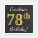 Black, Faux Gold 78th Birthday + Custom Name Napkin