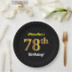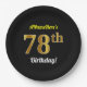 Black, Faux Gold 78th Birthday + Custom Name Paper Plate