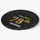 This simple, personalised, birthday-themed paper plate design features a customisable message like "ANameHere’s 78th Birthday!", where the name can be changed, and with the "78th" having a faux/imitation gold-like appearance. It also features a black coloured background. Paper plates like these could perhaps be used at a party being held to celebrate somebody’s seventy eighth birthday. [~Z0000143]
