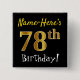 Black, Faux Gold 78th Birthday, With Custom Name 15 Cm Square Badge