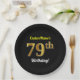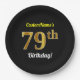 Black, Faux Gold 79th Birthday + Custom Name Paper Plate