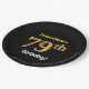 This simple, customisable, birthday-themed paper plate design features a customisable message like "CustomName’s 79th Birthday!", where the name can be changed, and with the "79th" having a faux/imitation gold-like appearance. It also features a black coloured background. Paper plates like these could perhaps be used at a party being held to celebrate somebody’s seventy ninth birthday. [~Z0000143]
