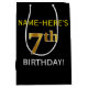 Black, Faux Gold 7th Birthday + Custom Name Medium Gift Bag
