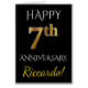 This simple, personalised wedding anniversary greeting card design features the message "HAPPY 7th ANNIVERSARY", with the "7th" having a faux gold-like appearance. The front also features a personalised name, and a black background. The inside features a custom wedding anniversary greeting message. It could be given to a husband or a wife in celebration of the couple’s seventh wedding anniversary. [~Z0000076]