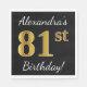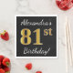 Black, Faux Gold 81st Birthday + Custom Name Napkin