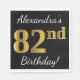 Black, Faux Gold 82nd Birthday + Custom Name Napkin