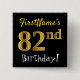 Black, Faux Gold 82nd Birthday, With Custom Name 15 Cm Square Badge