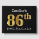 Black, Faux Gold 86th Birthday Party + Custom Name Guest Book
