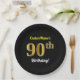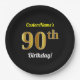 Black, Faux Gold 90th Birthday + Custom Name Paper Plate