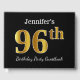 Black, Faux Gold 96th Birthday Party + Custom Name Guest Book