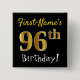 Black, Faux Gold 96th Birthday, With Custom Name 15 Cm Square Badge