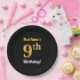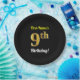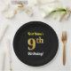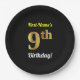 Black, Faux Gold 9th Birthday + Custom Name Paper Plate