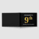 This guest book design features the ordinal number "9th" with a faux gold-like appearance. It also features a personalised name, and a black coloured background. It could be used at a party for somebody celebrating their ninth birthday. [~Z0000054]
