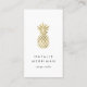 Elegant vertical business cards feature a faux gold foil pineapple illustration on a white background with two lines of custom text in soft off-black. Customise the back with your full contact details in white on charcoal off-black, displayed beneath a smaller pineapple illustration.