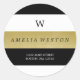 Monogrammed return address label in black, white, and gold featuring broad stripes and an elegant font.