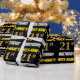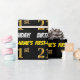 This wrapping paper design features a message like "FIRST-NAME’S 21st BIRTHDAY!", with the "21st" having a faux/imitation gold-like colour appearance, and with the name and "BIRTHDAY" in a fun, bold font. The name can be personalised, and the background is coloured black. Wrapping paper like this could perhaps be used when wrapping birthday gifts being given to somebody in celebration of their twenty first birthday. [~Z0000203]