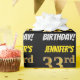 This wrapping paper design features a message like "JENNIFER’S 33rd BIRTHDAY!", with the "33rd" having a faux/imitation gold-like colour appearance, and with the name and "BIRTHDAY" in a fun, bold font. The name is customisable, and the background is coloured black. Wrapping paper like this could perhaps be used when wrapping birthday gifts being given to somebody in celebration of their thirty third birthday. [~Z0000203]