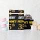 This wrapping paper design features a message like "FIRST-NAME’S 35th BIRTHDAY!", with the "35th" having a faux/imitation gold-like colour appearance, and with the name and "BIRTHDAY" in a fun, bold font. The name can be customised, and the background is coloured black. Wrapping paper like this could perhaps be used when wrapping birthday gifts being given to somebody in celebration of their thirty fifth birthday. [~Z0000203]
