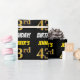 This wrapping paper design features a message like "JENNIFER’S 43rd BIRTHDAY!", with the "43rd" having a faux/imitation gold-like colour appearance, and with the name and "BIRTHDAY" in a fun, bold font. The name can be customised, and the background is coloured black. Wrapping paper like this could perhaps be used when wrapping birthday gifts being given to somebody in celebration of their forty third birthday. [~Z0000203]