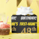This wrapping paper design features a message like "FIRST-NAME’S 48th BIRTHDAY!", with the "48th" having a faux/imitation gold-like colour appearance, and with the name and "BIRTHDAY" in a fun, bold font. The name is customisable, and the background is coloured black. Wrapping paper like this could perhaps be used when wrapping birthday gifts being given to somebody in celebration of their forty eighth birthday. [~Z0000203]