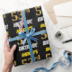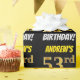 This wrapping paper design features a message like "ANDREW’S 53rd BIRTHDAY!", with the "53rd" having a faux/imitation gold-like colour appearance, and with the name and "BIRTHDAY" in a fun, bold font. The name can be customised, and the background is coloured black. Wrapping paper like this could perhaps be used when wrapping birthday gifts being given to somebody in celebration of their fifty third birthday. [~Z0000203]