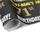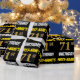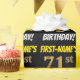 This wrapping paper design features a message like "FIRST-NAME’S 71st BIRTHDAY!", with the "71st" having a faux/imitation gold-like colour appearance, and with the name and "BIRTHDAY" in a fun, bold font. The name can be personalised, and the background is coloured black. Wrapping paper like this could perhaps be used when wrapping birthday gifts being given to somebody in celebration of their seventy first birthday. [~Z0000203]