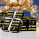 This wrapping paper design features a message like "FIRSTNAME’S 73rd BIRTHDAY!", with the "73rd" having a faux/imitation gold-like colour appearance, and with the name and "BIRTHDAY" in a fun, bold font. The name is customisable, and the background is coloured black. Wrapping paper like this could perhaps be used when wrapping birthday gifts being given to somebody in celebration of their seventy third birthday. [~Z0000203]