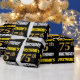 This wrapping paper design features a message like "FIRSTNAME’S 75th BIRTHDAY!", with the "75th" having a faux/imitation gold-like colour appearance, and with the name and "BIRTHDAY" in a fun, bold font. The name can be customised, and the background is coloured black. Wrapping paper like this could perhaps be used when wrapping birthday gifts being given to somebody in celebration of their seventy fifth birthday. [~Z0000203]